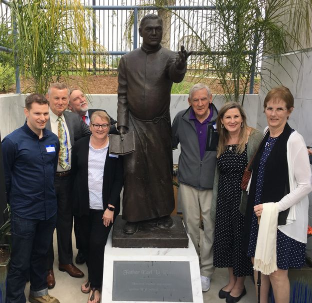 In 2018 four Alumni setup this website to share stories, anecdotes,and reflections of AHS and Father La Riviere’s influence on their lives. Response was overwhelming! The now much larger group proposed erecting a statue of Father La Riviere on campus, as well as plans for a Scholarship Campaign. Thanks to those advocates, Aquinas President Dr. Jim Brennan, and Father Earl’s nephew Mark La Riviere, a bronze statue now stands in the La Riviere Grotto on the Aquinas campus. And on the wall of the Grotto, near the description of Father La Riviere is a section with 80 names…mostly Aquinas Alumni from 1959-1969 who’s lives were markedly impacted by this one teacher.